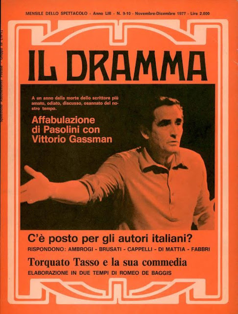 Un incontro con Gassman è molto stimolante, perché in lui, nella sua esperienza di attore, si sintetizzano gran parte dei motivi dell’esperienza scenica dal nostro dopoguerra ad oggi. Il suo lavoro ha compreso un repertorio vastissimo, ed è stato marcato anche da lunghe assenze dalla scena e una vasta esperienza come attore cinematografico. A Gassman viene voglia di fare un’infinità di domande; personalmente, qui, vorrei riportare un colloquio che comprende qualche appunto-riflessione sull'attore e il suo ultimo lavoro teatrale, « Affabulazione » di Pasolini.